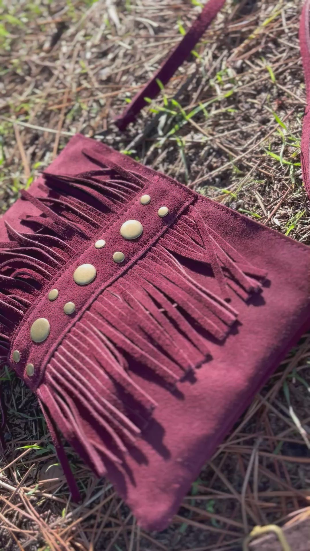 Bolso de ante granate y tachuelas -