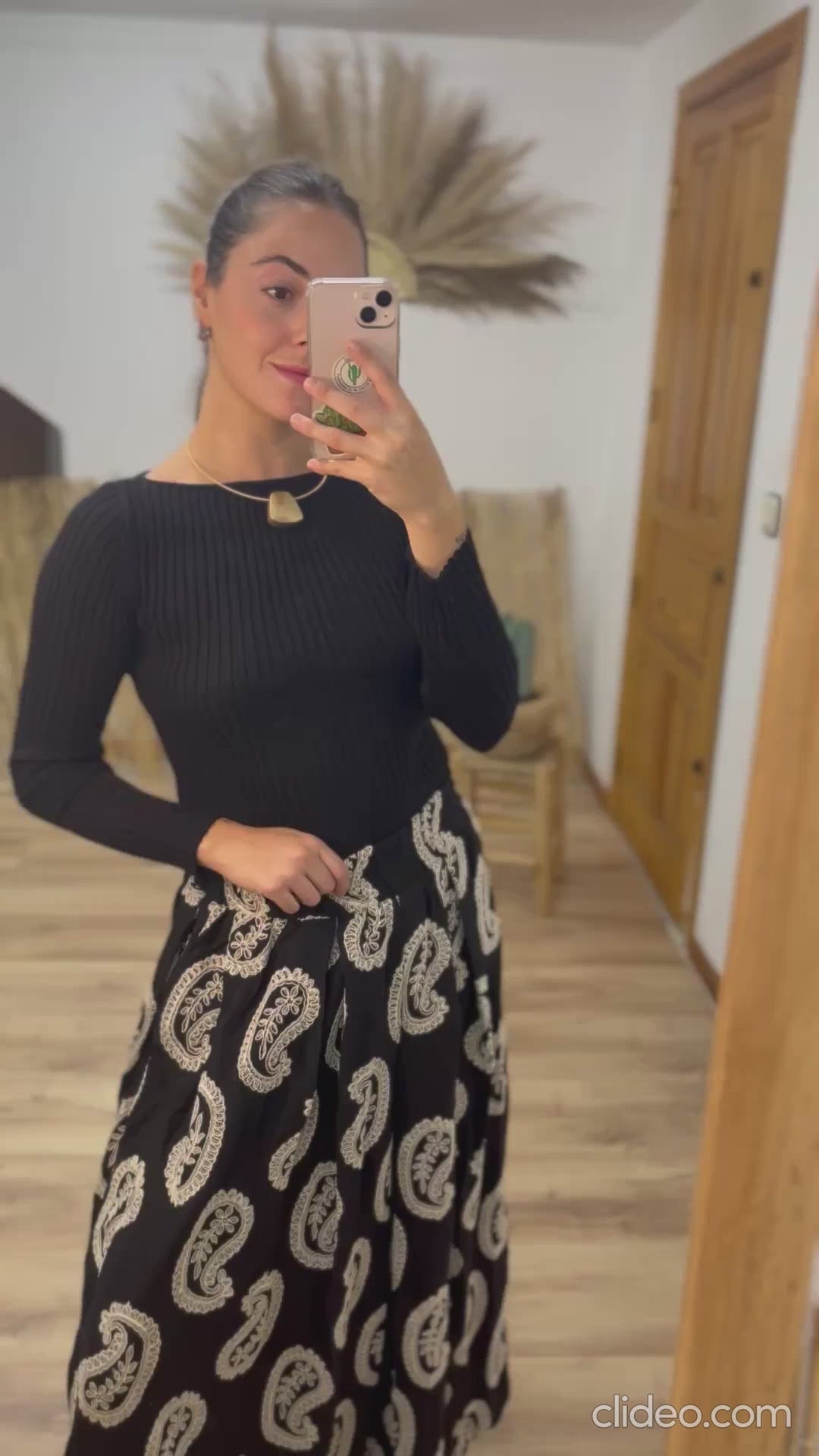 Vestido de punto largo negro con bajo lencero - Hedy Lamarr -